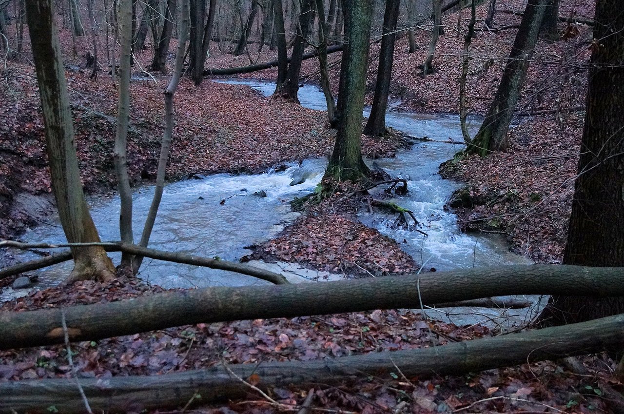 Die Fotos zeigen den angeschwollenen Bach der Dalbek. Ein Überqueren ohne Brücke ist nicht mehr möglich.
