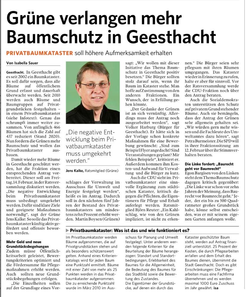 Seit 2010 hat sich leider nach unseren Informationen die Anzahl der im Privatbaumkataster erfassten Bäume von 466 auf 437 reduziert. Diese negative Entwicklung muss unbedingt im Sinne eines aktiven kommunalen Umweltschutzes umgekehrt werden.