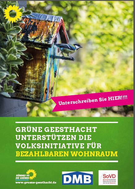 Ortsvorstand und Fraktion der Geesthachter Grünen unterstützen die Volksinitiative für bezahlbaren Wohnraum.