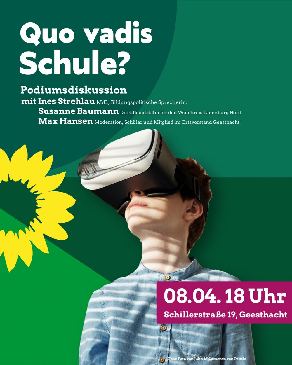 Eingeladen sind Susanne Baumann, Schulleiterin der Grundschule in Nusse, Direktkandidatin für den Wahlkreis Lauenburg-Nord zur Landtagswahl sowie Ines Strehlau, Landtagsabgeordnete und bildungspolitische Sprecherin der grünen Landtagsfraktion.