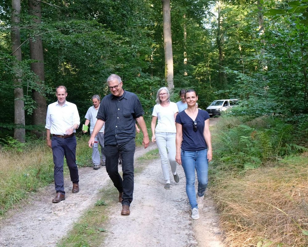 Die Sprecherin des Kreisvorstandes Dr. Laura Schwabe, Kreistagsfraktionsvorsitzende Annedore Granz und das Geesthachter bürgerliche Mitglied im Umweltausschuss Sonja Higgelke sowie weitere Vertreter von BÜNDNIS 90/DIE GRÜNEN der Kreistagsfraktion waren am Mittwoch zusammen mit Landrat Dr. Christoph Mager und Mitarbeitern der Forstbehörde in den Lauenburgischen Kreisforsten unterwegs.
