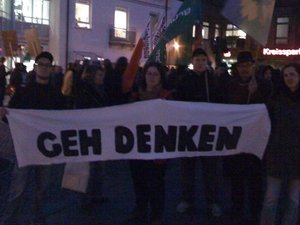 200 Menschen aus Parteien, Kirchen und der Bevölkerung versammelten sich heute Abend auf dem Bauhof, um gegen die geplante Kundgebung der "Nationalen Offensive Lauenburg" zu demonstrieren. Die rechtsradikale Vereinigung hatte in der vergangenen Woche einen Gedenkabend zu Ehren Horst Wessels bei dem Kreis angemeldet. Aufgrund der schnellen und massiven Mobilisierung zu einer Gegendemonstration zogen die Nazis die geplante Kundgebung zurück. Jedoch sind weitere Aktionen von Rechts geplant und bereits angemeldet.