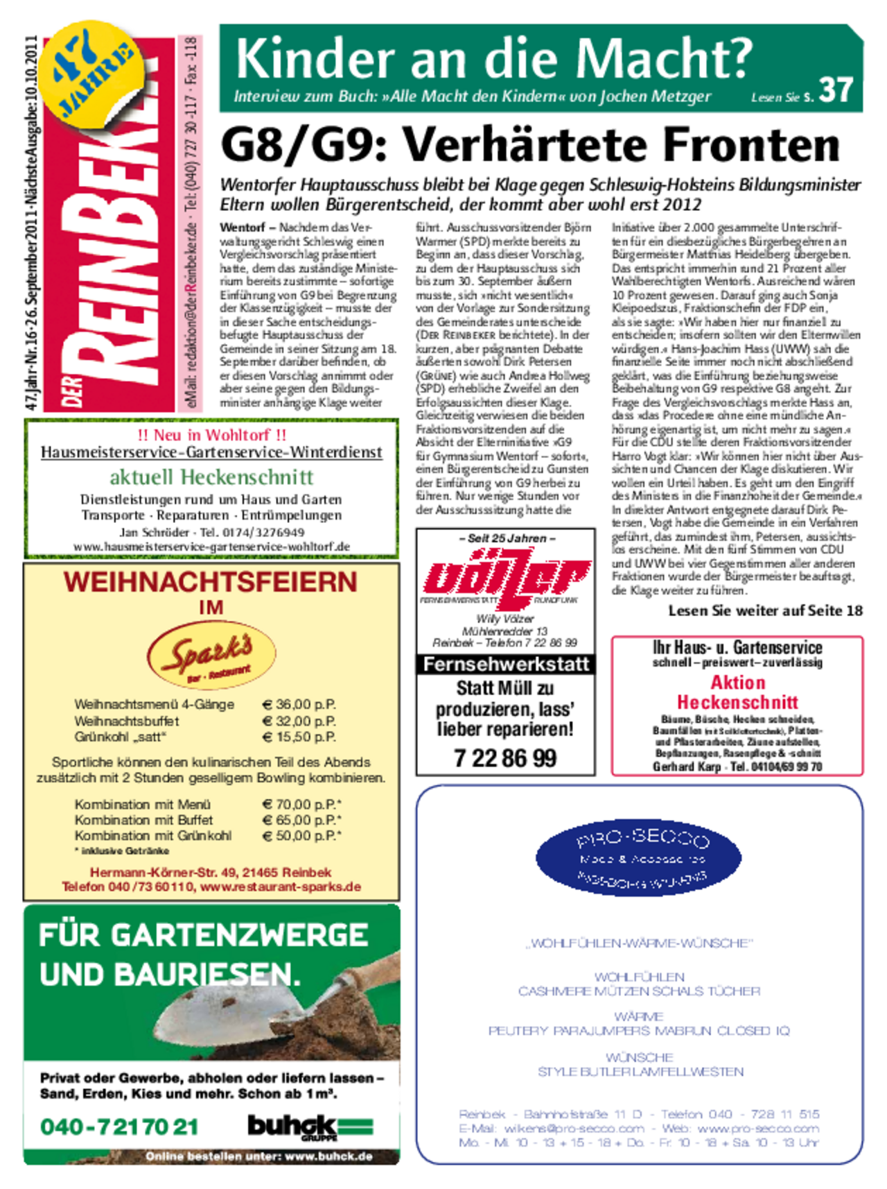 Gymnasialzeit spaltet Wentorf: Politik bleibt weiter auf G8-Kurs