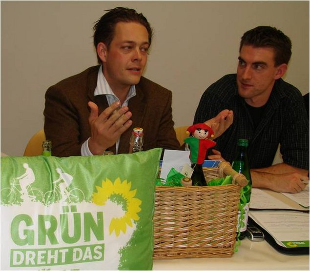 Die Mitgliederversammlung des Kreisverbandes von Bündnis 90/Die Grünen stand im Zeichen der Bundestagswahl am 27. September. Konstantin von Notz aus Mölln, Spitzenkandidat für Schleswig-Holstein und Sprecher der Grünen im Kreis, präsentierte Claims, Aktionsvorschläge und Plakate. Als Reaktion auf die politische Entwicklung der letzten Monate antworten die Grünen mit: „Aus der Krise hilft nur Grün!" Die Grünen haben das Konzept eines neuen Gesellschaftsvertrages vorgelegt, in dem es um einen sozialen und ökologischen Umbau der Gesellschaft geht. Die Grünen wollen durch eine Neuordnung der Energieerzeugung Arbeitsplätze schaffen, die Finanzmärkte neu regulieren und sich für soziale Gerechtigkeit stark machen. Anhand steigender Mitgliedszahlen und der Stimmzuwächse bei den letzten Wahlen stellt Konstantin von Notz fest: „Grün wächst!" Das vorgelegte Programm hat auch schon andere Parteien zum Kopieren angeregt. Dazu von Notz: „Grün sind wir - die anderen sind das Plagiat." Begeisterung rief bei den 30 auf der Versammlung erschienenen Mitgliedern ein Plakat hervor, auf dem ein Fass mit dem schwarz-gelben Symbol der Atomwirtschaft zu sehen ist, darunter der Spruch: „Schwarz-Gelb: Nein danke!"