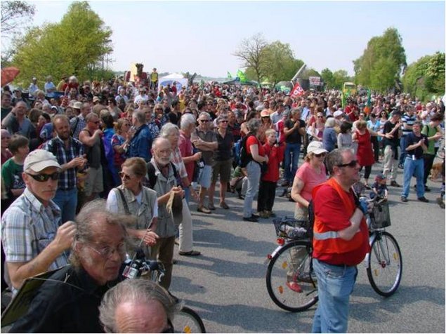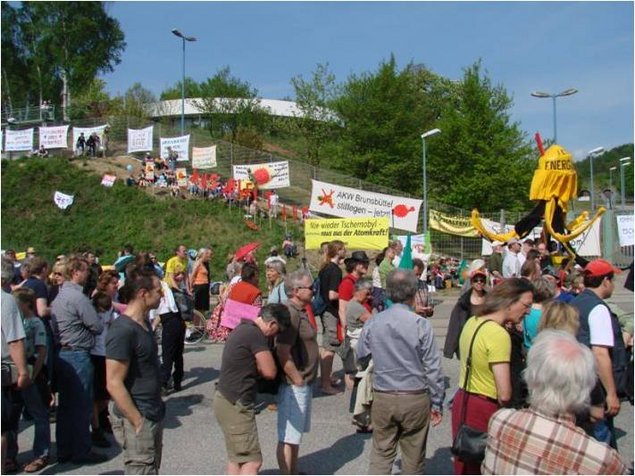 Die Großkundgebung am Tschernobyl-Tag in Krümmel demonstrierte mit ca. 2000 Teilnehmern (Angabe laut Deutschlandradio) ein eindrucksvolles Bekenntnis zum Verzicht auf Atomkraft. Atomkraft ist gefährlich, Krümmel ist überflüssig, Wind und Solar statt Atomar, Sicher ist nur das Risiko – waren einige der zur Schau getragenen Parolen. Die Besucher waren sternförmig aus Schleswig-Holstein, Niedersachsen und Hamburg per Fahrrad, Bahn und Bus/PKW angereist, um vor dem Tor des Atomkraftwerkes für ein "Aus-bleibt-Aus!" zu demonstrieren.