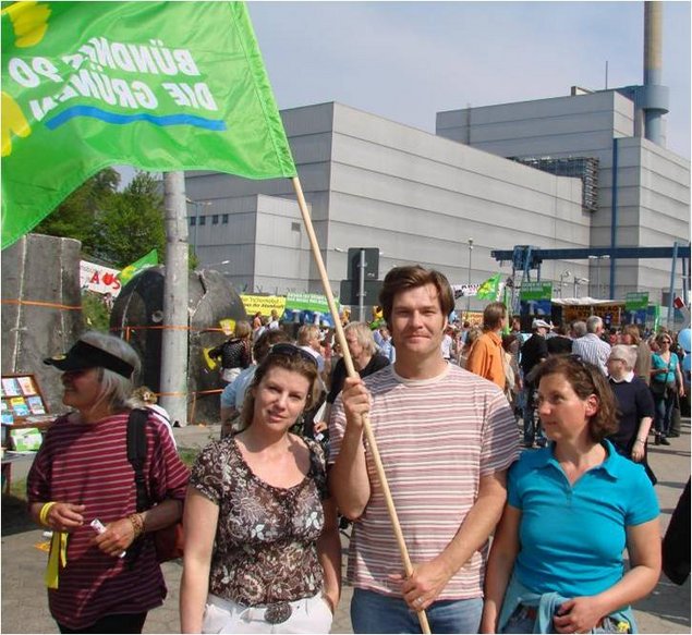 Claudia Roth, Bundesvorsitzende der Grünen, machte auf Ihrer Wahlbesuchstour durch Schleswig-Holstein auch einen Abstecher nach Krümmel. Zusammen mit Robert Habeck, Spitzenkandidat zur Landtagswahl aus Flensburg, drückte sie ihre Grüne Hand auf die 20 m lange Tapete: "Aus bleibt aus! Hand drauf!"