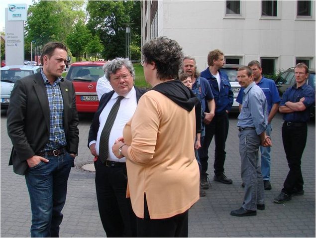 Auf seiner Schleswig-Holstein-Tour zur Europawahl machte der Spitzenkandidat der Grünen, Reinhard Bütikofer, einen Abstecher in Schwarzenbek bei der Fette GmbH, um sich beim Betriebsrat ein Bild über die angekündigte Entlassung von knapp einem Viertel der Mitarbeiter ein Bild zu machen. Vor dem eigentlichen Termin gab es ein ca. 25-min. Gespräch mit der Geschäftssleitung. Reinhard wurde begleitet von Konstantin von Notz, dem Spitzenkandidat für Schleswig-Holstein zur Bundestagswahl.
