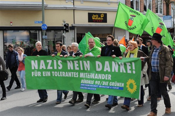 Gemeinsam mit Verbänden, Vereinen, Gewerkschaften und Kirchen haben wir Grüne und andere Parteien in der Neumünsteraner Innenstadt gegen die menschenverachtende Ideologie von Nazis protestiert. Am 1. Mai hatte die NPD hier ihre zentrale Wahlkampfveranstaltung für die Landtagswahl am 6. Mai geplant und so erneut versucht, den internationalen Tag der Arbeiterinnen und Arbeiter für ihre Ideologie zu instrumentalisieren.