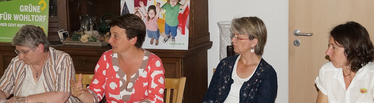 Diskussion mit Anke Erdmann (MdL Grüne), Mary Herbst (Diakonisches Werk), Annedore Granz (Kreistagsfraktion Grüne), Moderation Uta Röpcke (Sprecherin Grüne) in Aumühle