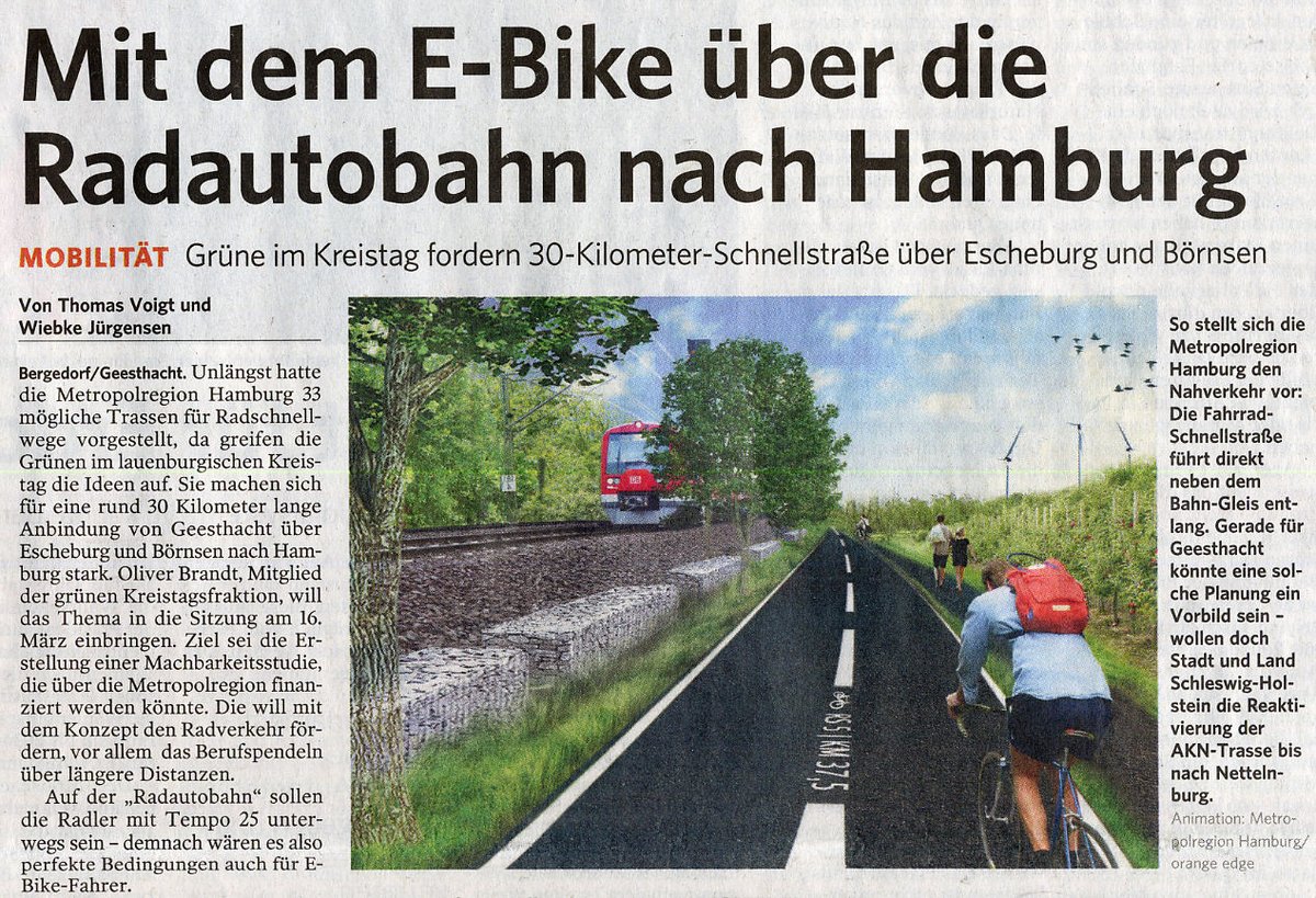 Bezugnehmend auf den Artikel „Weg frei für Ratzeburger Umgehung“, Lübecker Nachrichten 14. April 2017, bemerkt Tormählen: „Brackmann tut so, als ob der Bau der Ortsumgehung Ratzeburg bald beginnen könnte. Dabei sollen die Planungen hierfür erst bis zum Jahr 2030 abgeschlossen werden. In der Prioritätenliste rangiert die Ortsumgehung ganz hinten. Zu Recht, denn durch die ortsferne Lage der Trasse kann nur eine geringfügige Entlastungswirkung von ca. 15 Prozent erreicht werden.“