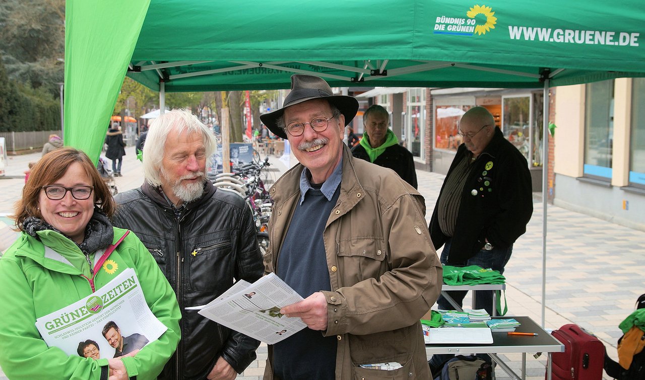 Manchmal etwas mühsam - aber es geht: Mit öffentlichen Verkehrsmitteln durch Schleswig-Holstein zu reisen. Eka von Kalben, Fraktionsvorsitzende der Landtagsfraktion der Grünen, traf pünktlich von Lauenburg kommend mit dem Bus um 16 Uhr in der Fußgängerzone Bergedorfer Straße ein. Die folgenden Kontakte zu Bürgern waren durchmischt. Neben "Kein Interesse" traf sie mit ihrem Team sowie mit Direktkandidat Burkhard Peters und einigen Grünen aus Geesthacht auch viele Bürger mit Gesprächsbereitschaft und Sympathie für Fragen nachhaltiger und ökologischer Politik. Eka: "Wir hatten von Lauenburg bis hier eine doch recht lange Busfahrt hinter uns. Aber wir sind durch eine herrliche Landschaft gefahren und stellen uns vor, dass sie touristisch interessant ist. Allerdings scheint uns das auf Bussen basierte Angebot nicht ausreichend. Deshalb sollte die Bahnanbindung in der Region bald umgesetzt werden. Bei einer Schienenanbindung würden sicher noch mehr Bürger die öffentlichen Verkehrsmittel nutzen. Auf unserer Tour haben wir viele Menschen getroffen, die sich gefreut haben, uns zu sehen."